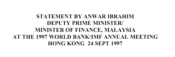 Cuba readers baca ni... Ini teks ucapan siapa ye...? Siapa yang pergi Annual Meeting 1997 tu? Tun M ke Anwar ??? Siapa yang terhegeh-hegeh gelar diri dia sebagai governor of Bank Malaysia ??? Hahahaha... Dasar tak tau malu !!!